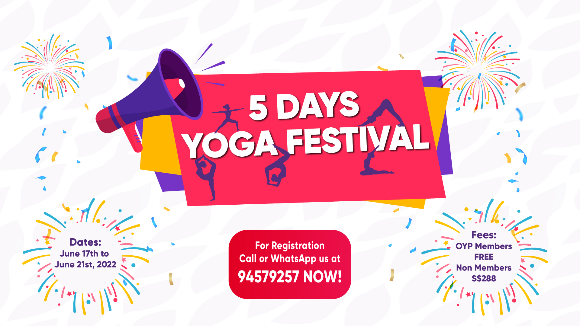 We'll also have some traditional Yoga props for sale during the festival. Join us for our anniversary event on June 18th evening for some performances and enlightening documenteries on Yoga,This event is our way to say thank you to all our members and supporters. Its free for all members. If you are not our member and still you want to be a part of this festival, Festival passes are available for sale. For non members passes will cost S$288. For Festival Passes, you can call or whatsapp us on 94579257. Following is the Calendar of Events during our Yoga Festival